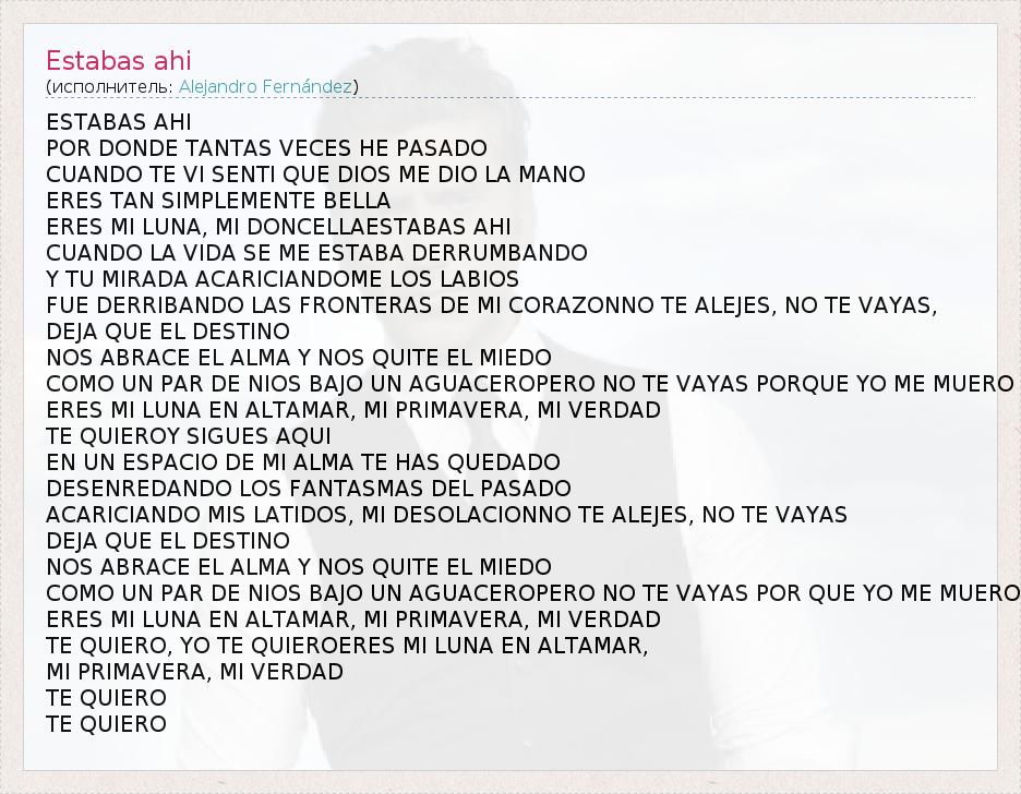 А как ты думаешь, о чем песня "Estabas ahi" ?