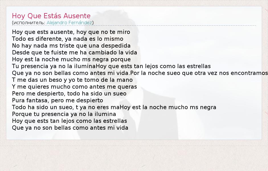 А как ты думаешь, о чем песня "Hoy Que Estás Ausente" ?