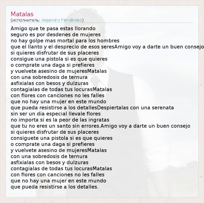 Это интересно:Алехандро сын знаменитого Висенте Фернандеса. Он с честью поддерживал семейные традиции и своим появлением на сцене прославил мексиканских ранчерасов среди молодого поколения. Бархатный голос певца и глубина его звучания, заставляли поклонников падать в обморок.Он родился в Мехико 24 апреля 1971 года, но как это ни странно был зарегистрирован в Гвадалахаре, в Ялиско - оно известно... продолжение