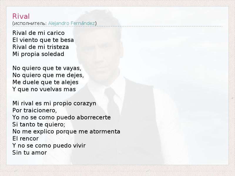 Это интересно:Алехандро сын знаменитого Висенте Фернандеса. Он с честью поддерживал семейные традиции и своим появлением на сцене прославил мексиканских ранчерасов среди молодого поколения. Бархатный голос певца и глубина его звучания, заставляли поклонников падать в обморок.Он родился в Мехико 24 апреля 1971 года, но как это ни странно был зарегистрирован в Гвадалахаре, в Ялиско - оно известно... продолжение