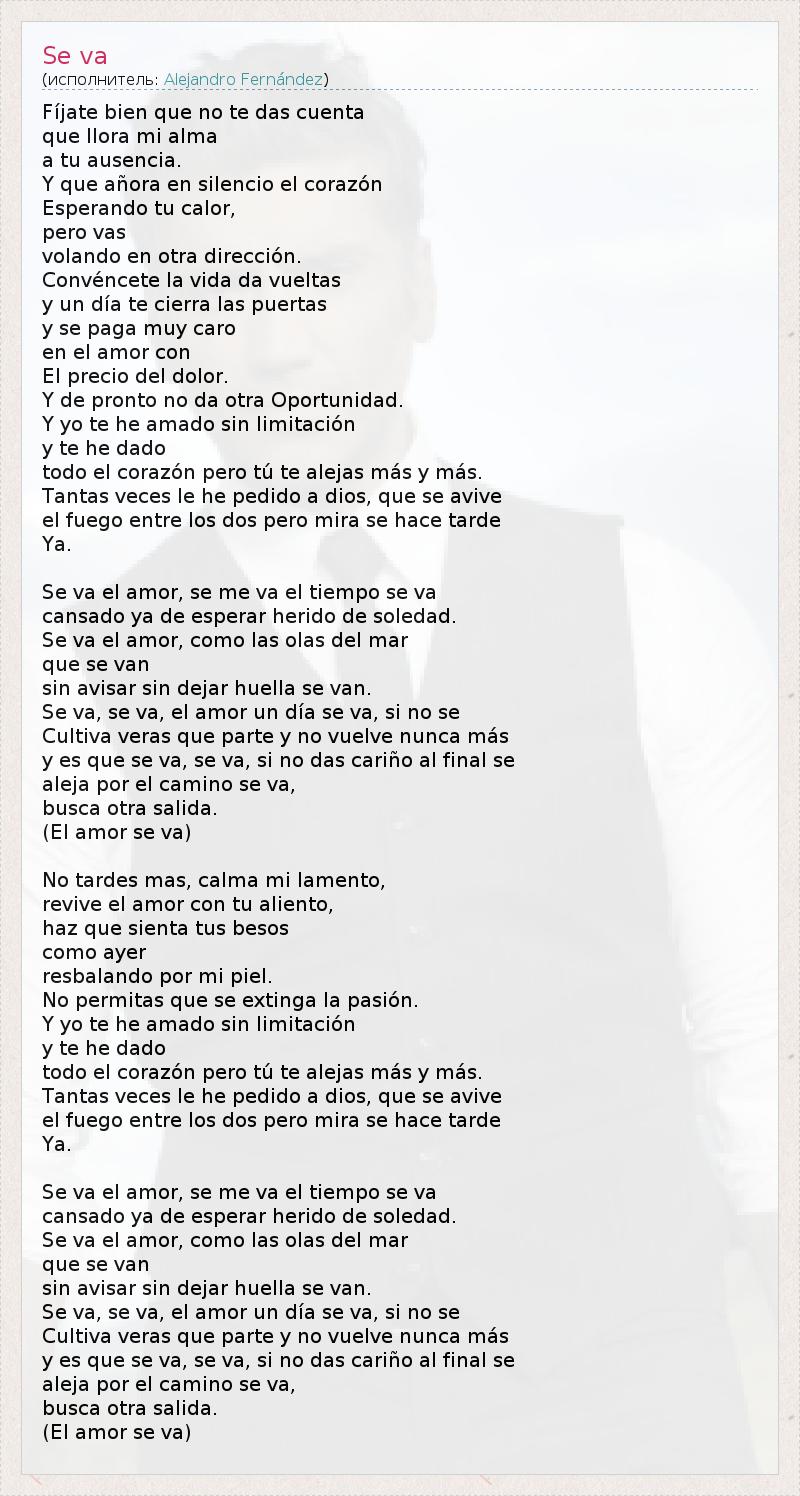 Se va, se va, el amor un día se va, si no se