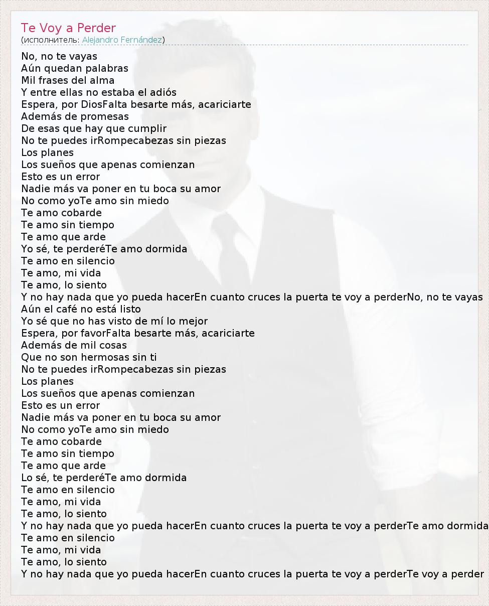 альбомы: Viento A Favor, Lo Esencial, Lo Esencial De Alejandro Fernández, Mas Romántico Que Nunca - Sus Grandes Exitos Románticos, Te Voy a Perder