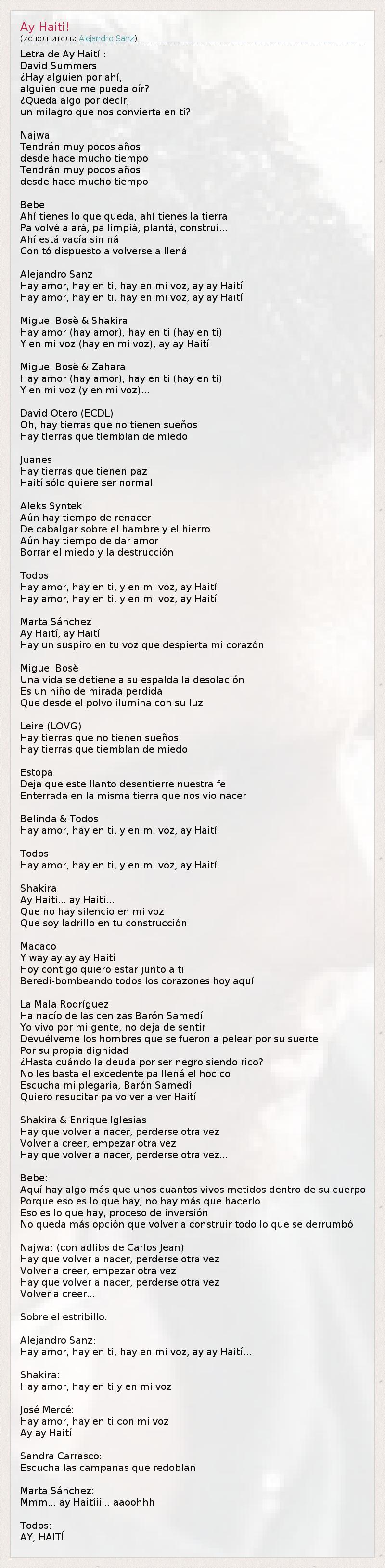 А как ты думаешь, о чем песня "Ay Haiti!" ?