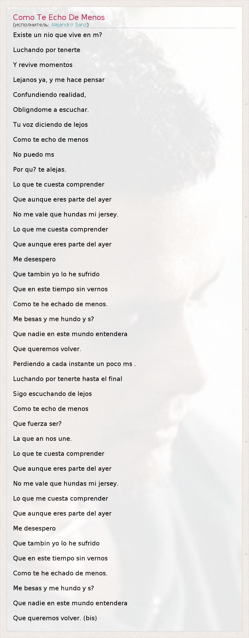 А как ты думаешь, о чем песня "Como Te Echo De Menos" ?