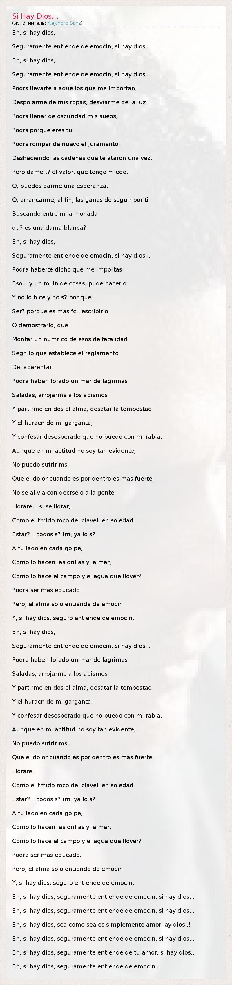А как ты думаешь, о чем песня "Si Hay Dios..." ?