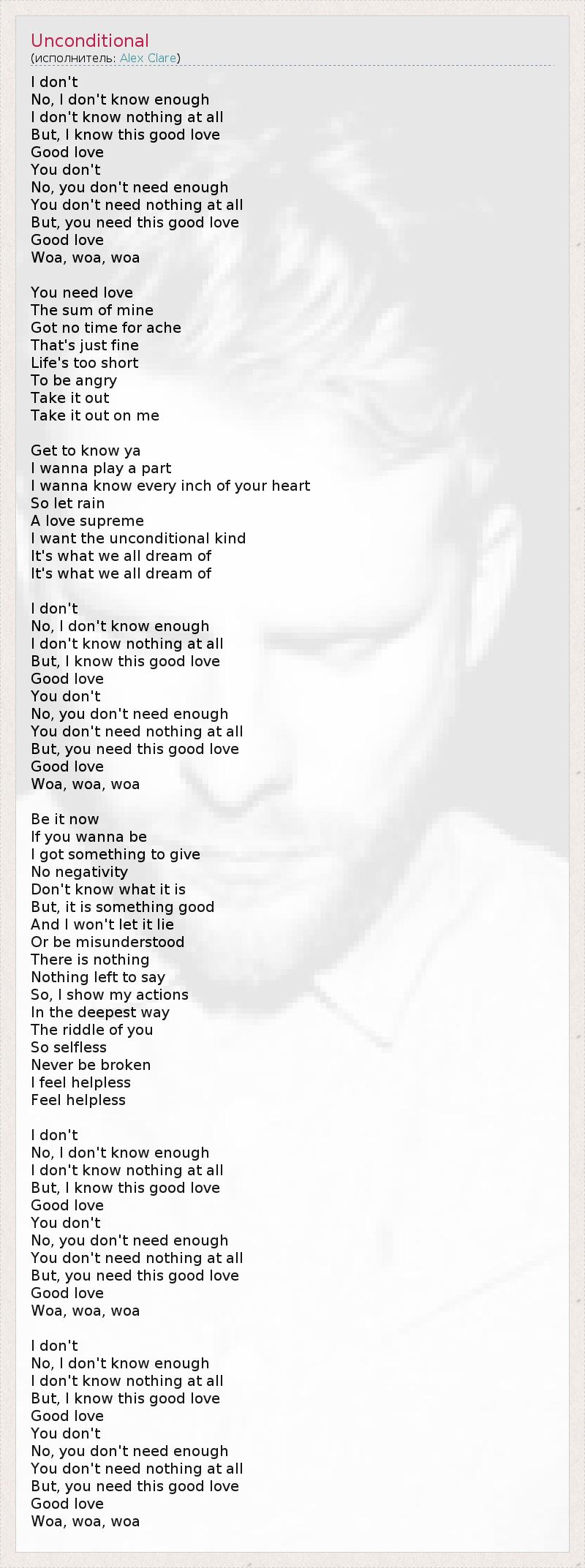 А как ты думаешь, о чем песня "Unconditional" ?
