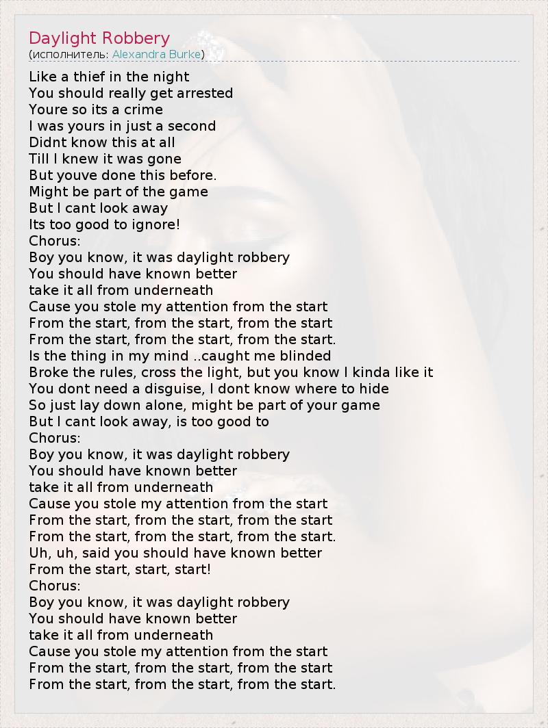 А как ты думаешь, о чем песня "Daylight Robbery" ?