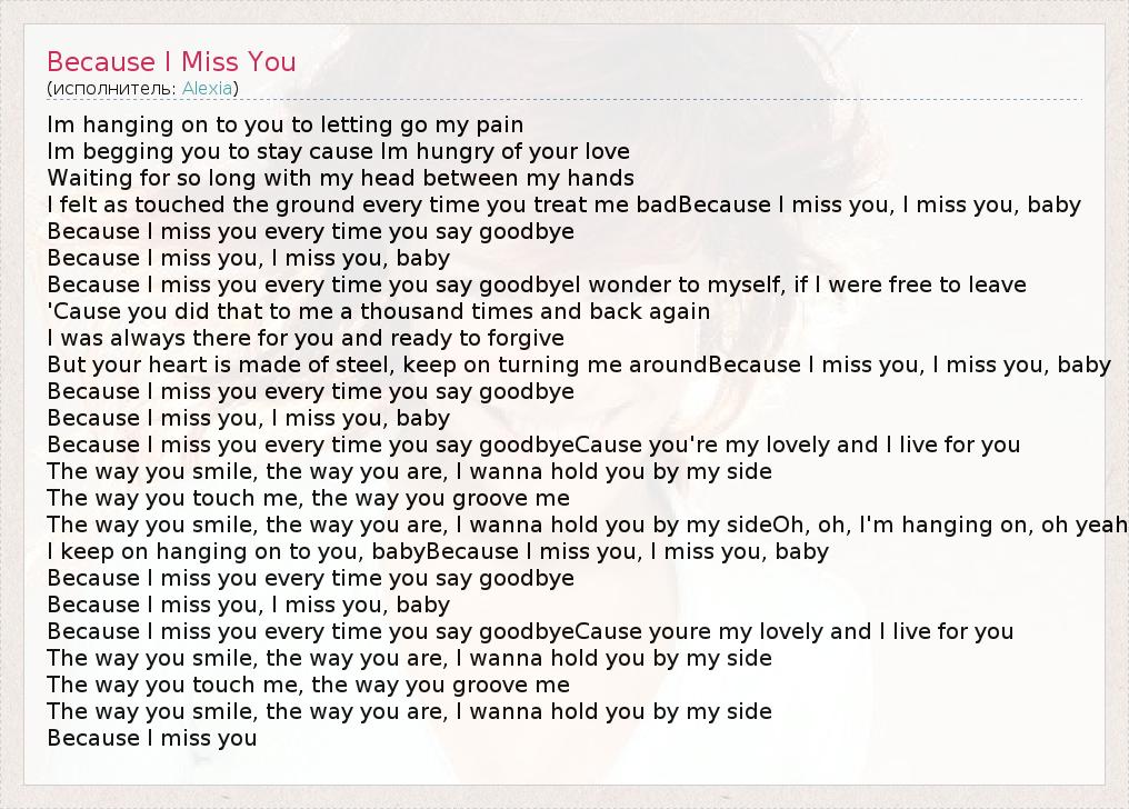 I keep on hanging on to you, babyBecause I miss you, I miss you, baby