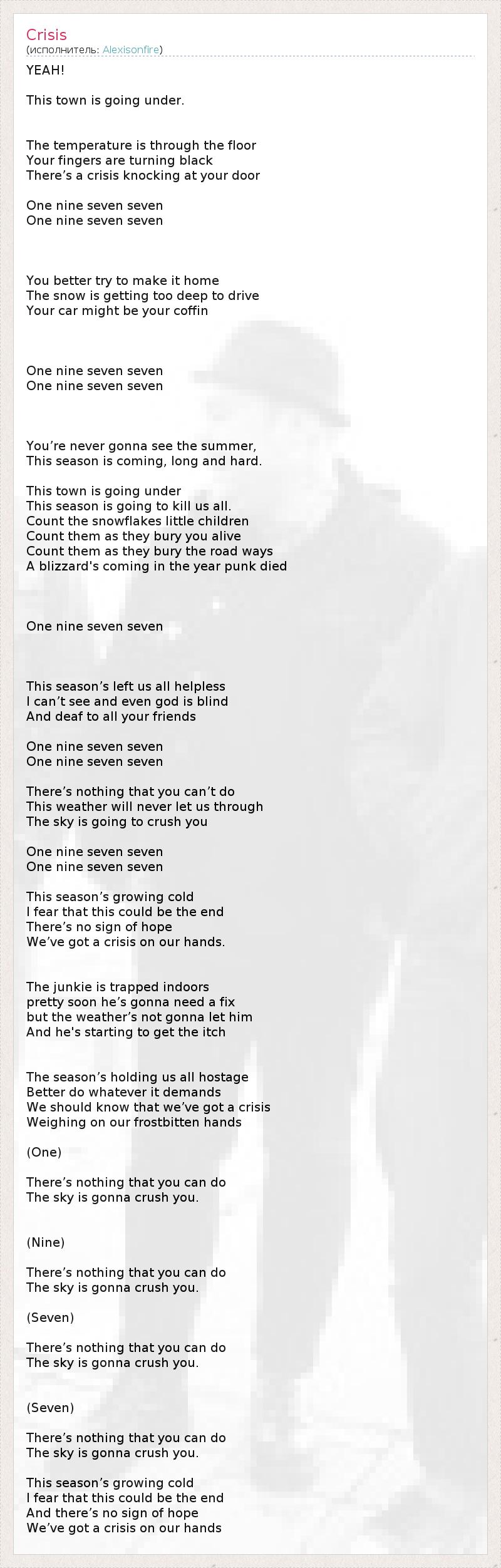 Это интересно:Alexisonfire (произносится как Alexis-on-fire) — музыкальная группа, образованная в городе Сент-Катаринс, Канада в 2001 году. В состав группы входят Джордж Петтит, Даллас Грин, Уэйд МакНил, Крис Стил и Джордан Гастингс. 5 августа 2011 года коллектив объявил о прекращении совместной деятельности. Но 9 марта 2015 года объявляют о возобновлении музыкальной карьеры.Сами музыканты описывают свою... продолжение