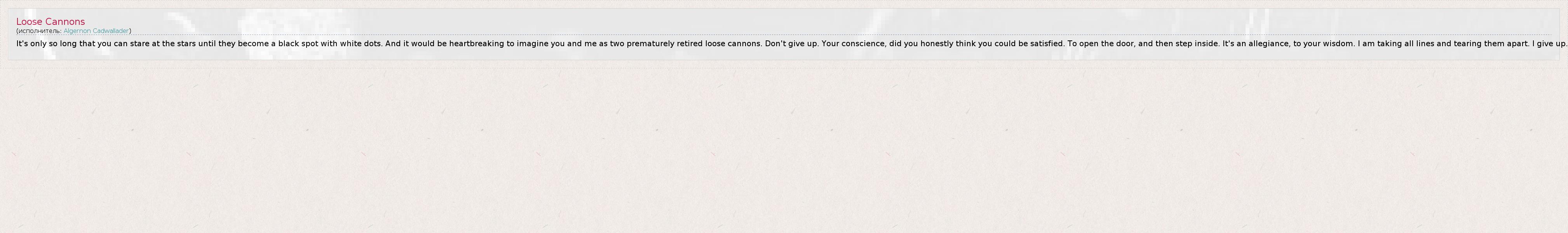 А как ты думаешь, о чем песня "Loose Cannons" ?