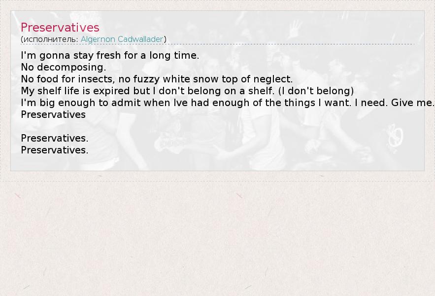 А как ты думаешь, о чем песня "Preservatives" ?