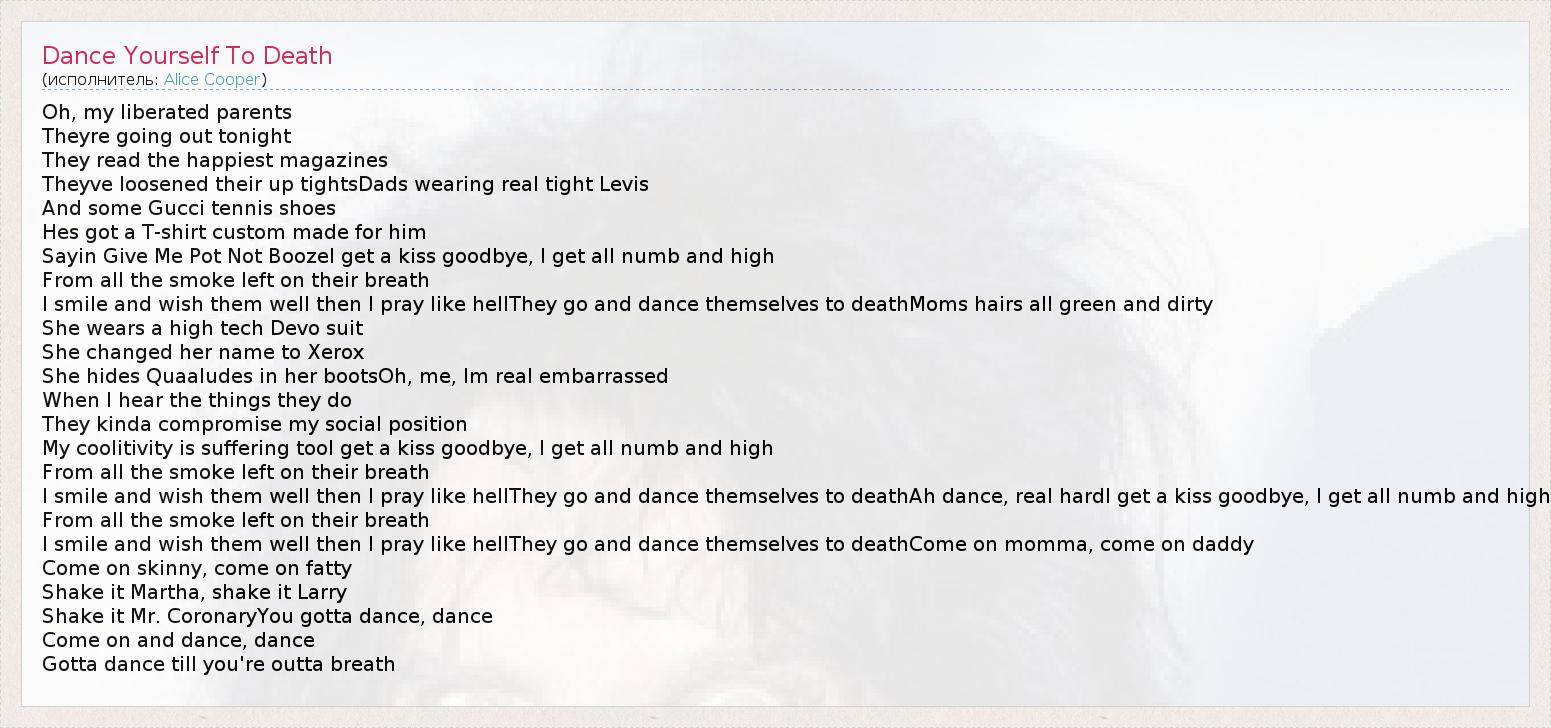 ГлавнаяИсполнителиAlice CooperDance Yourself To Death