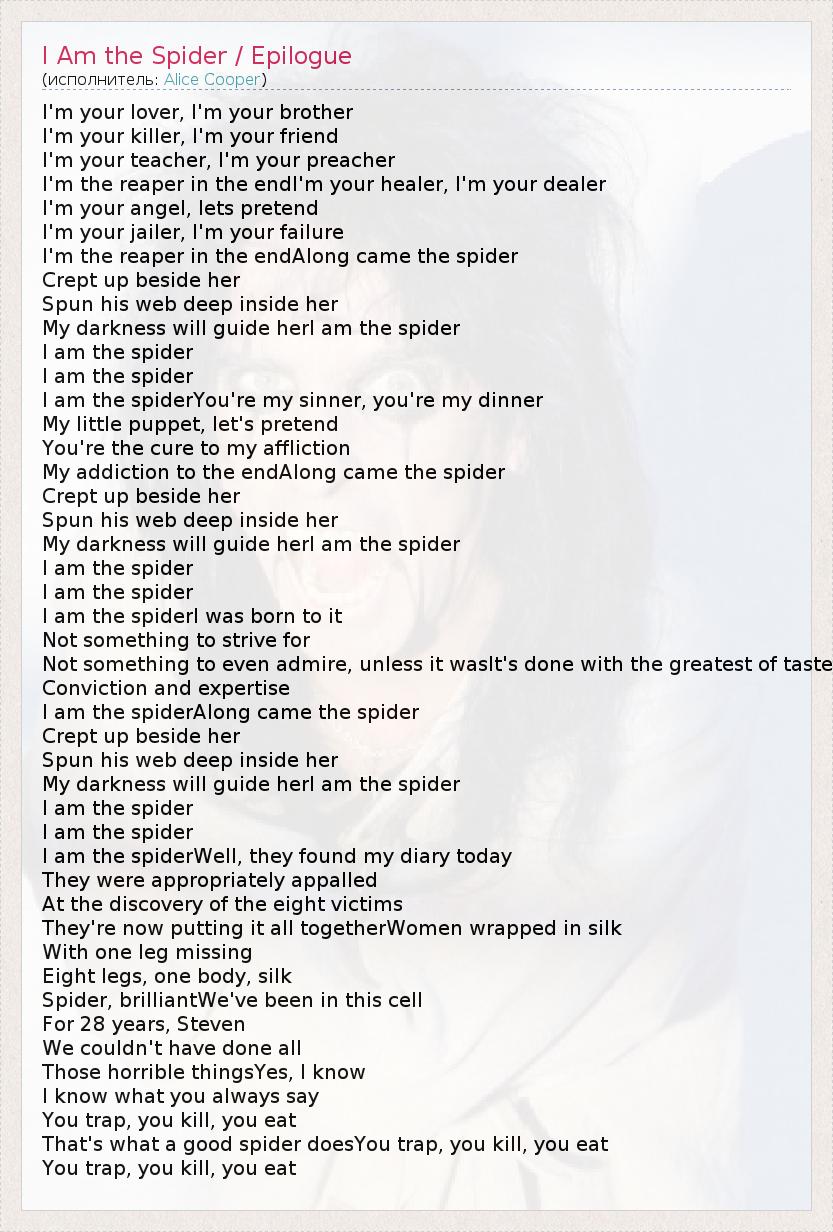 А как ты думаешь, о чем песня "I Am the Spider / Epilogue" ?