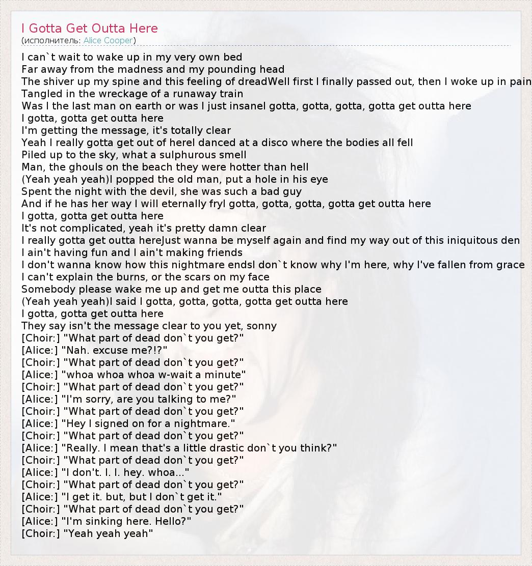 А как ты думаешь, о чем песня "I Gotta Get Outta Here" ?