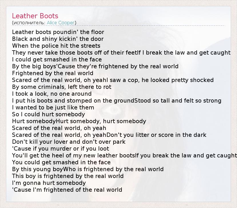 А как ты думаешь, о чем песня "Leather Boots" ?