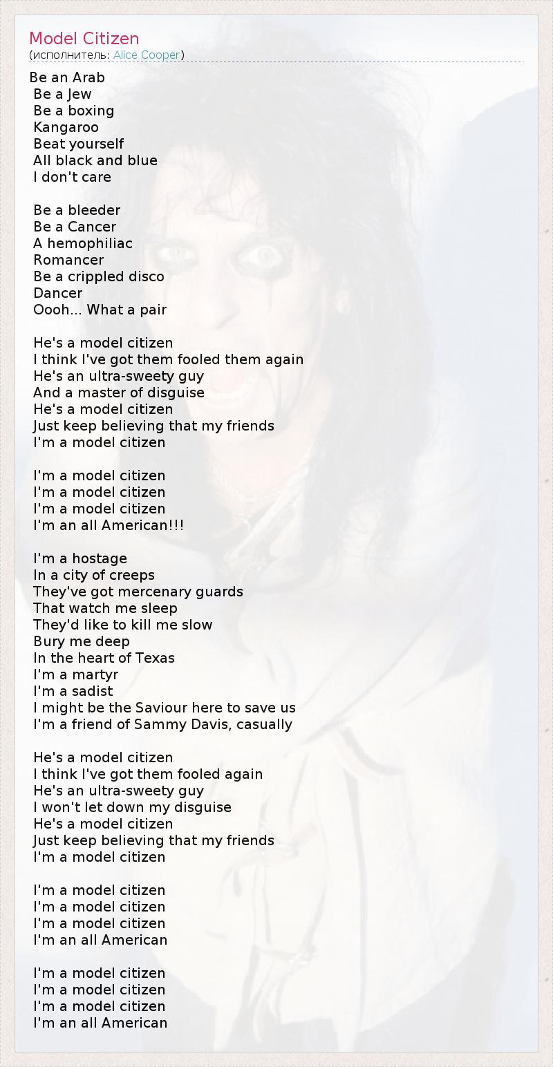 А как ты думаешь, о чем песня "Model Citizen" ?
