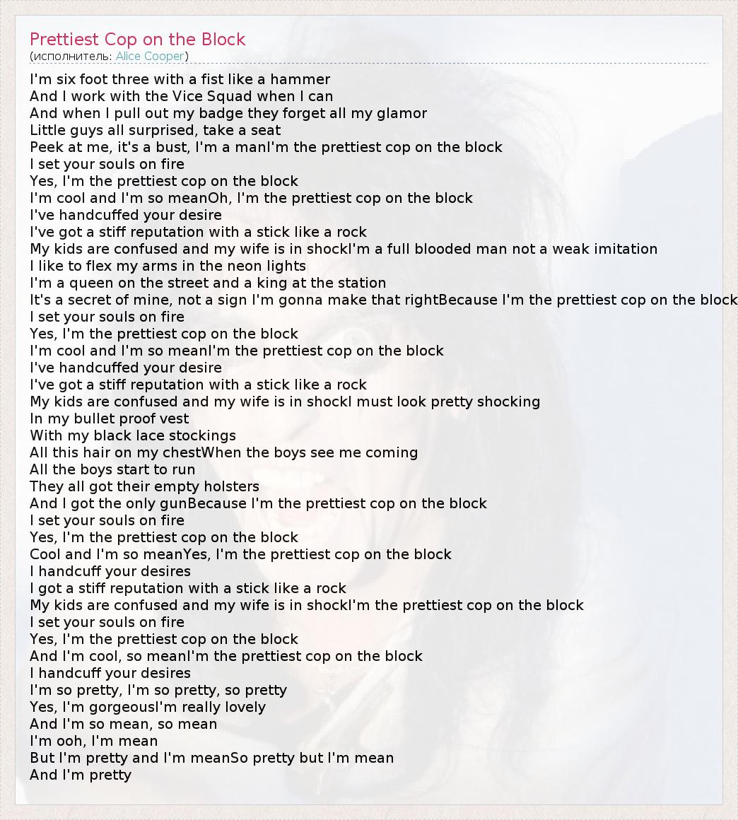 А как ты думаешь, о чем песня "Prettiest Cop on the Block" ?