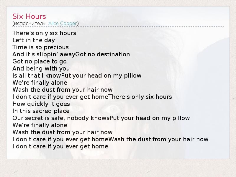 А как ты думаешь, о чем песня "Six Hours" ?