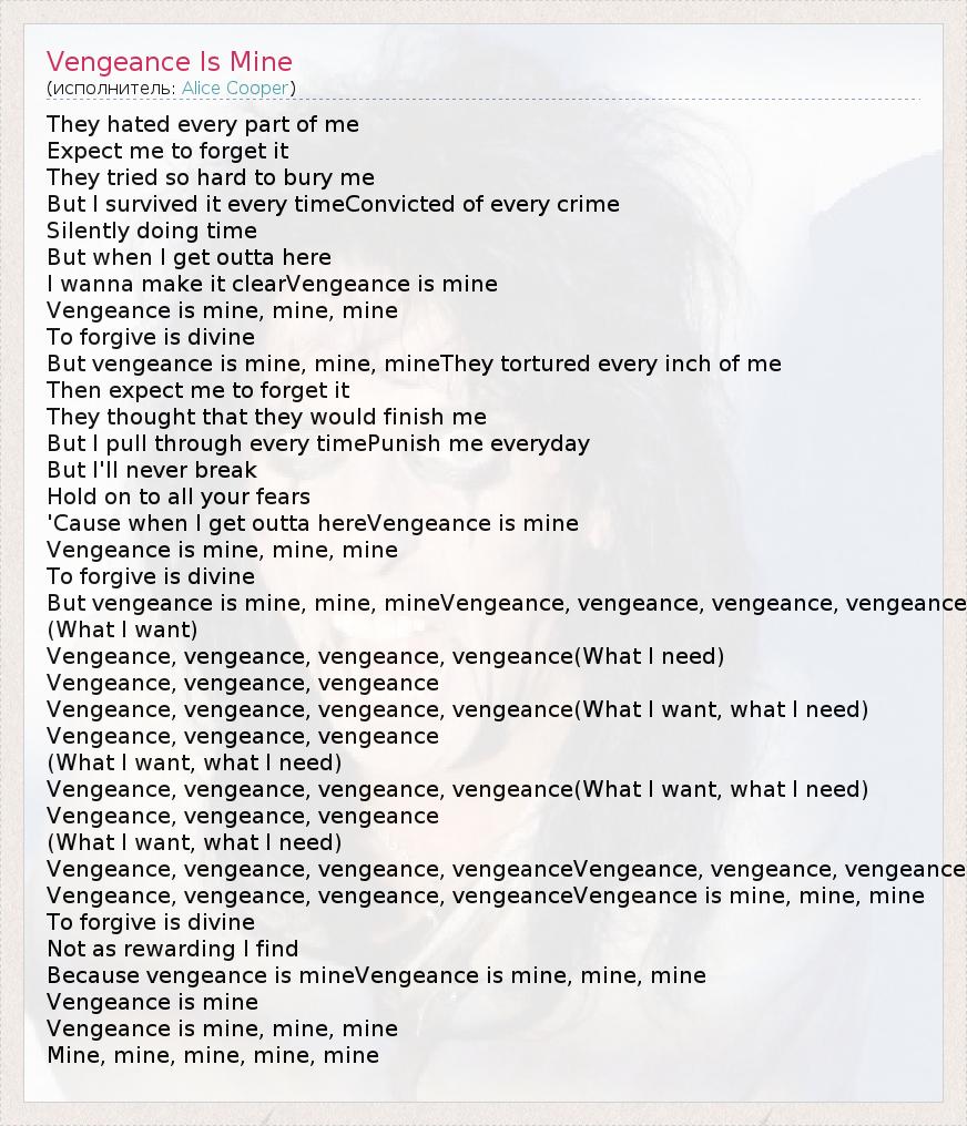 But vengeance is mine, mine, mineVengeance, vengeance, vengeance, vengeance