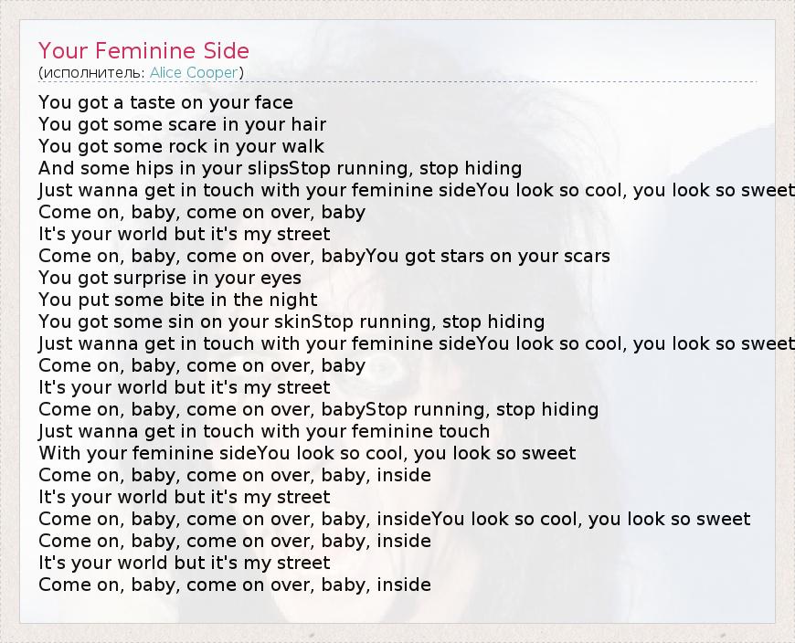 А как ты думаешь, о чем песня "Your Feminine Side" ?