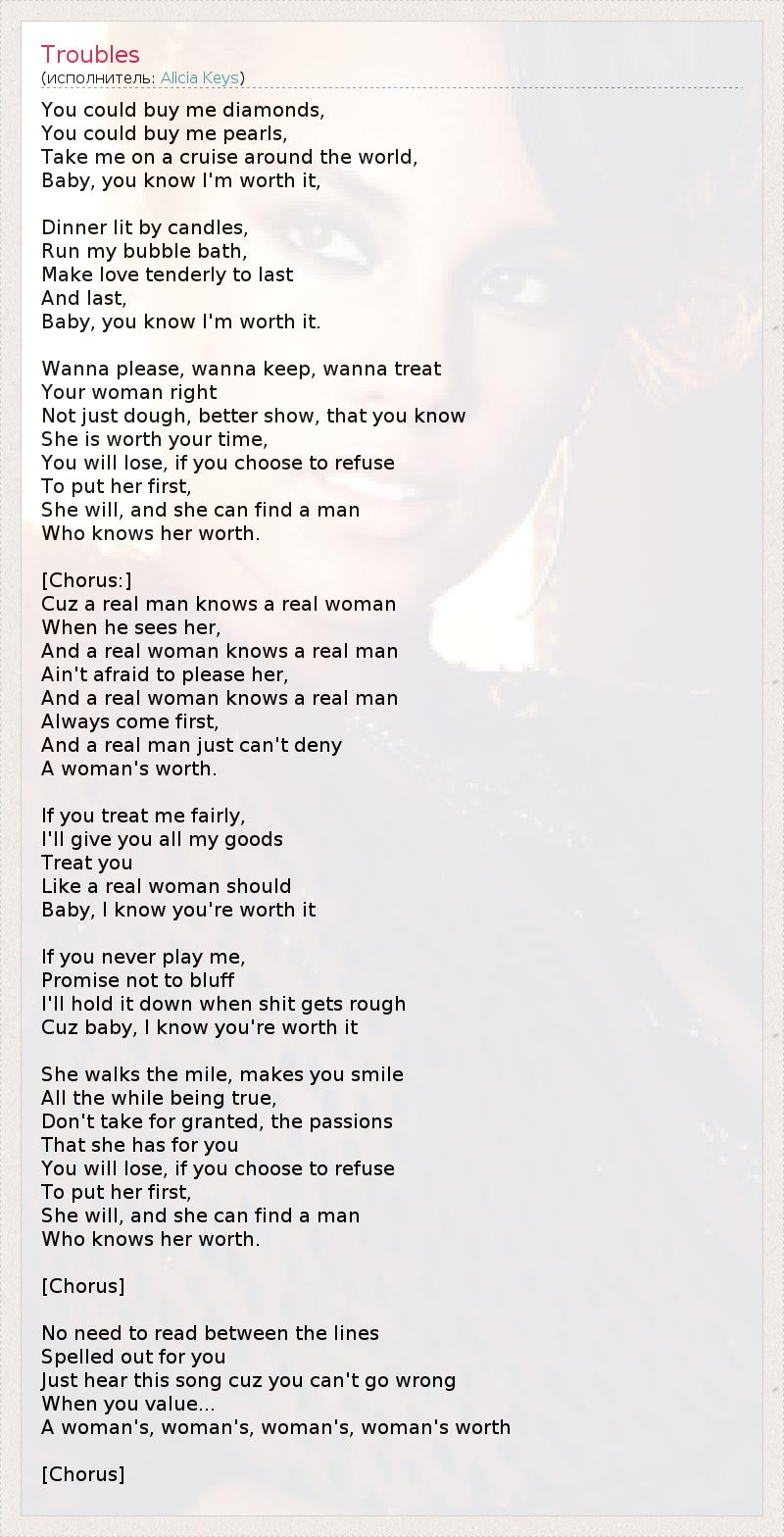 Это интересно:Алиша Киз (анг. - Alicia Keys, наст. имя Alicia J. Augello-Cook, род. 25 января 1981 года) — американская певица, пианистка, автор песен, продюсер и актриса. Ей покорились четырнадцать премий «Грэмми», а общемировой тираж её записей превышает 35 миллионов копий. Алиша Киз родилась и выросла в неспокойном, но творческом районе Нью-Йорка с прозаичным названием" Адская кухня" в семье помощницы адвоката... продолжение