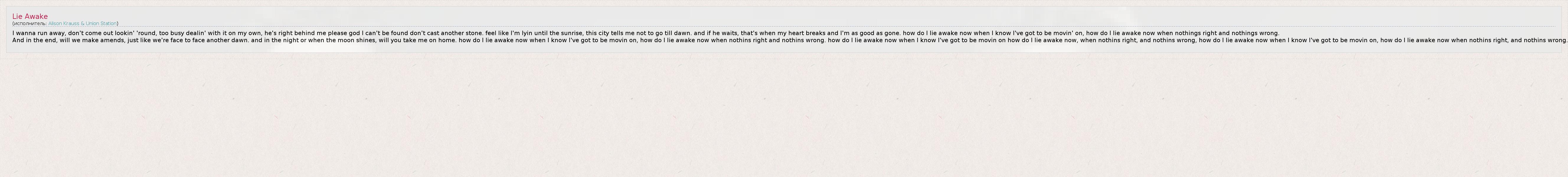 А как ты думаешь, о чем песня "Lie Awake" ?