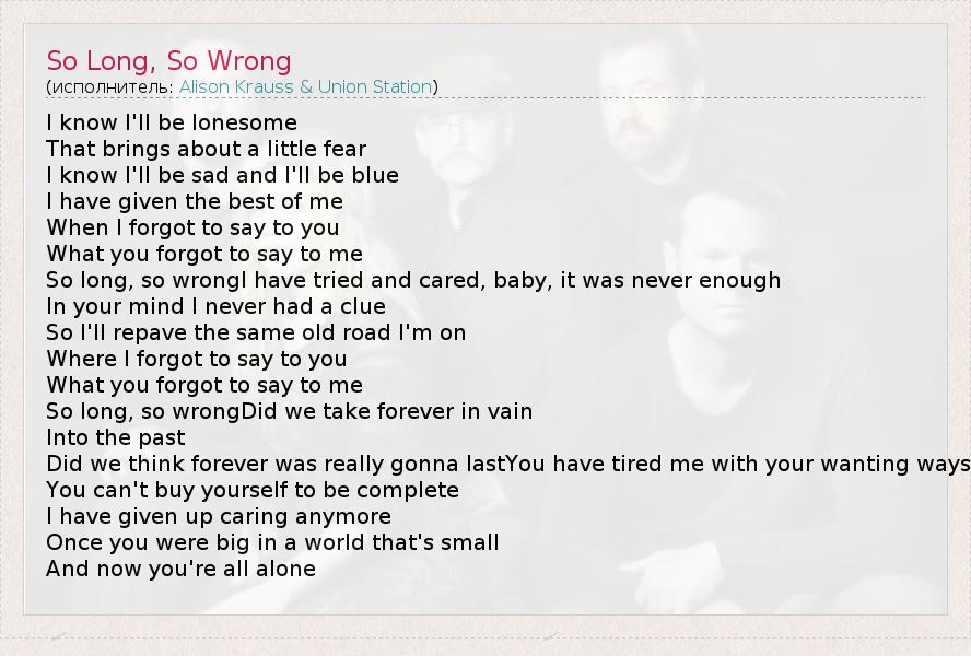 А как ты думаешь, о чем песня "So Long, So Wrong" ?