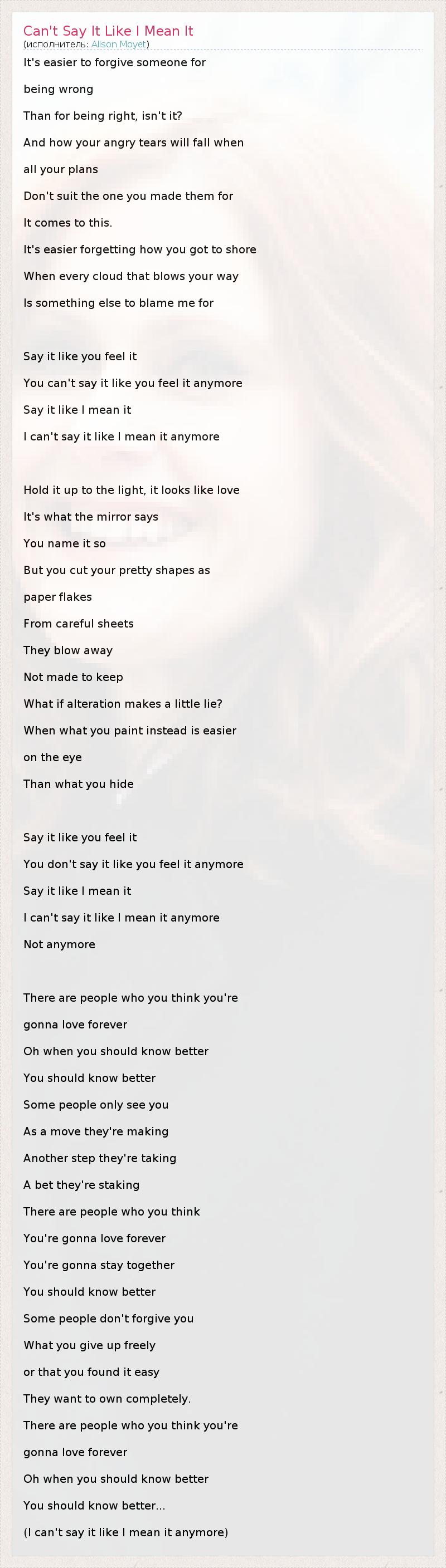 А как ты думаешь, о чем песня "Can't Say It Like I Mean It" ?