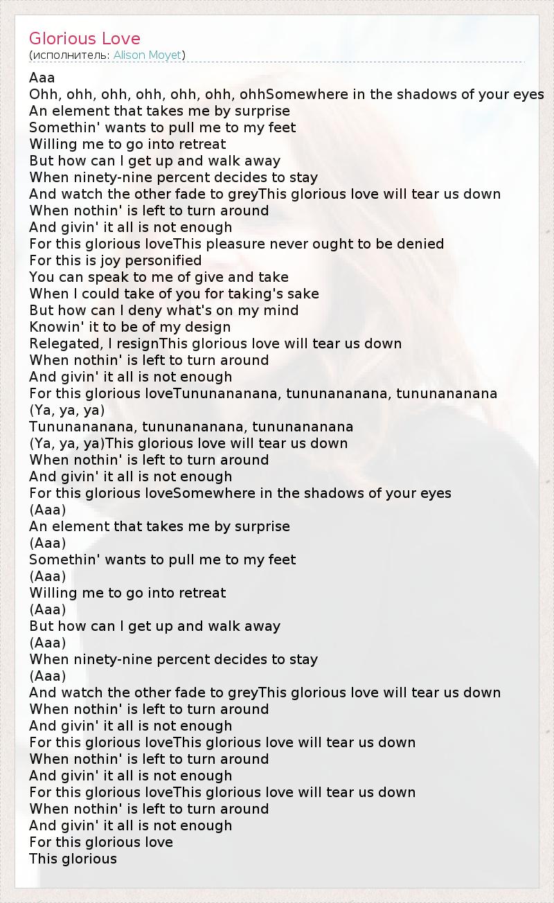 А как ты думаешь, о чем песня "Glorious Love" ?