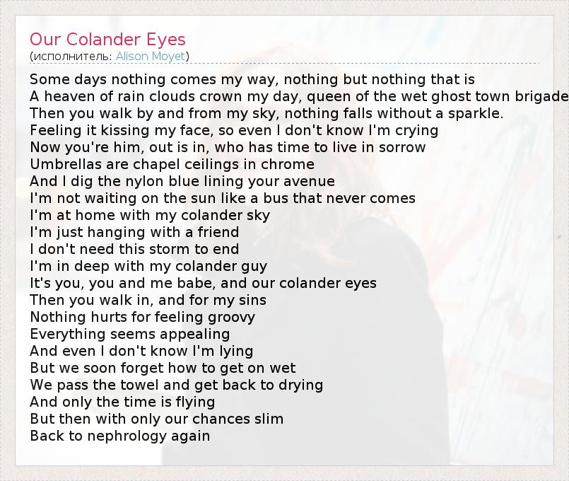А как ты думаешь, о чем песня "Our Colander Eyes" ?