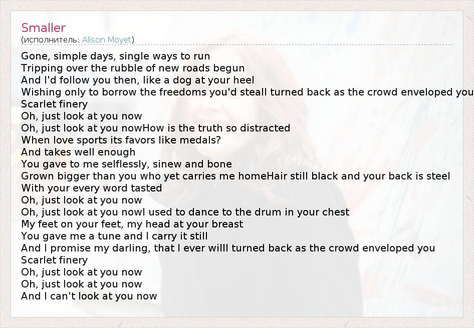 Это интересно:Молодость.Alison Moyet родилась в Billericay, где посещала Школу Николаса. После окончания школы в 16 лет она работала помощником продавца магазина и обучалась работе настройщика фортепьяно. Она была членом многих панк-рок-, паб-рок- и блюз-групп в Юго-восточной области Эссекса в конце 70-х - начале 80-х, включая The Vandals, The Screamin' Ab Dabs, The Vicars and The Little Roosters (позже солировавший в ней Gary Lammin переименовал... продолжение