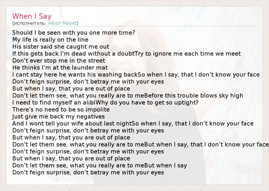 I cant stay here he wants his washing backSo when I say, that I don't know your face