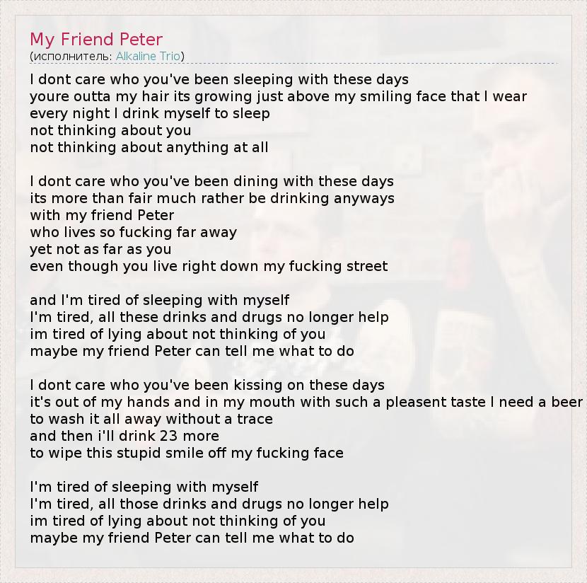 А как ты думаешь, о чем песня "My Friend Peter" ?