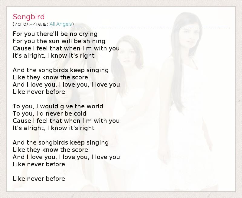 Это интересно:All Angels («Все ангелы») – британская группа, исполняющая, главным образом, классическую музыку. Была создана в 2006 г. Ее состав: Мелани Накла, Шарлотта Ричи, Лаура Райт, Дейзи Чат и Рейчел Фабри (с 2010 г.). Мелани родилась 29 декабря 1988 г. в Лондоне. У нее четверо братьев и сестер, и все они играют на различных музыкальных инструментах. Мелани занималась с ними уроками пения. Сама она с раннего возраста... продолжение