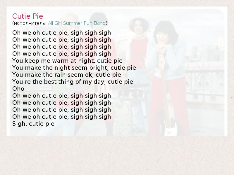 А как ты думаешь, о чем песня "Cutie Pie" ?