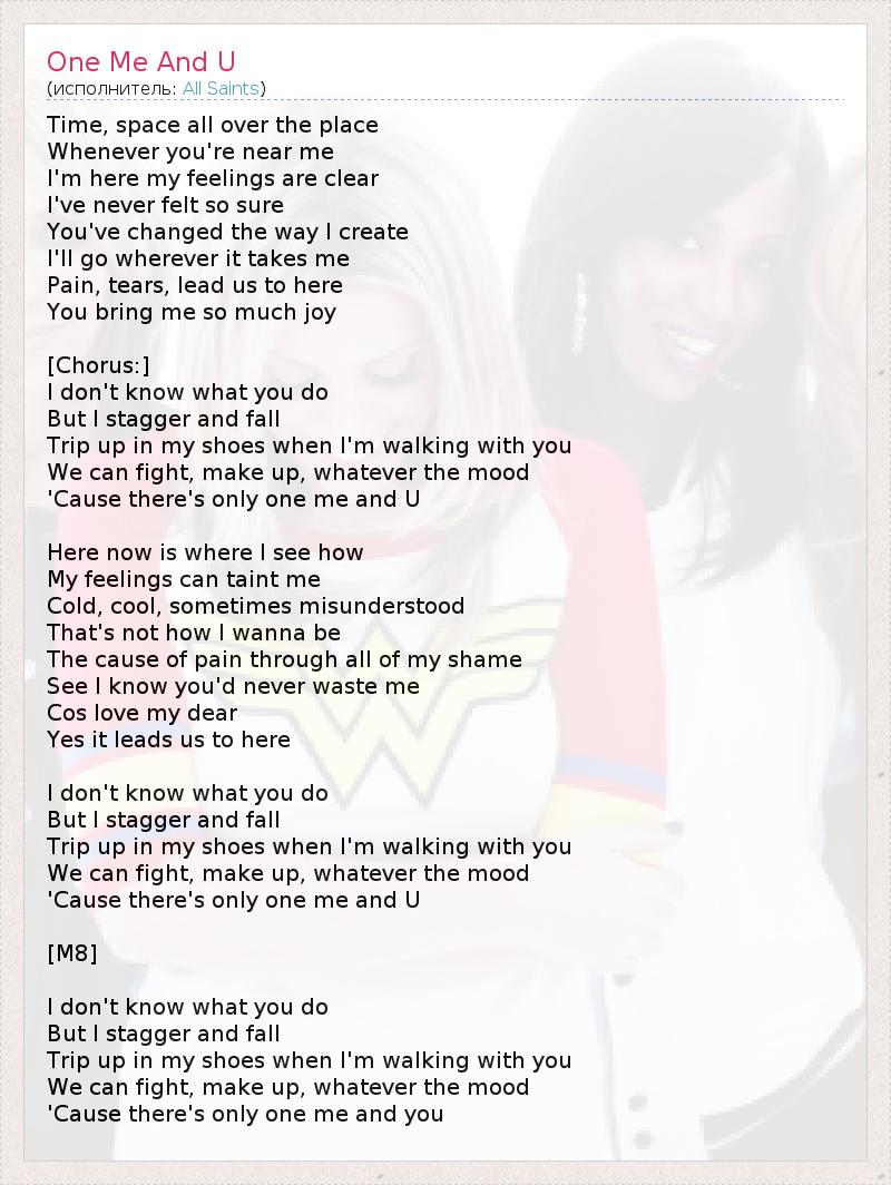 А как ты думаешь, о чем песня "One Me And U" ?