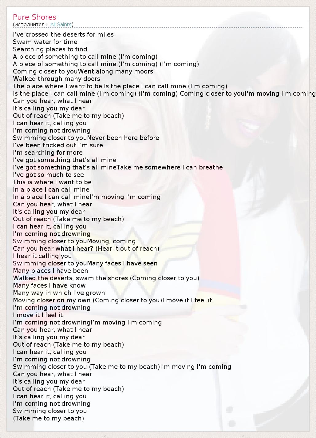 А как ты думаешь, о чем песня "Pure Shores" ?