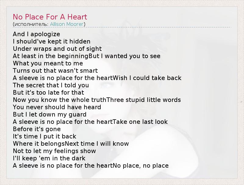 А как ты думаешь, о чем песня "No Place For A Heart" ?