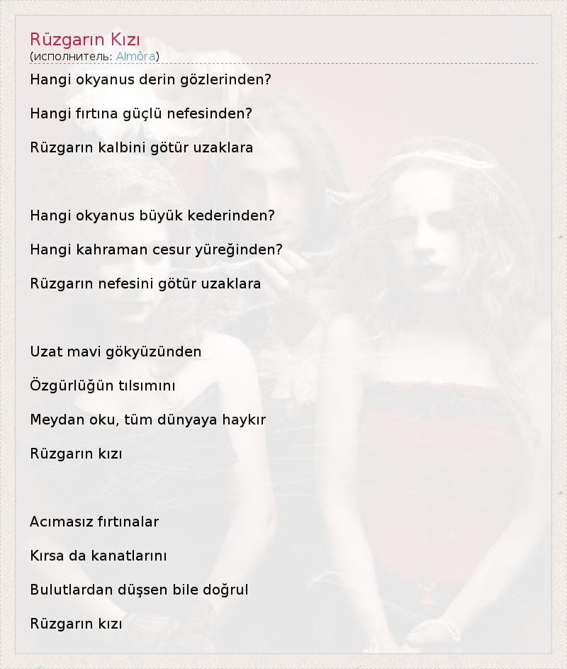 А как ты думаешь, о чем песня "Rüzgarın Kızı" ?