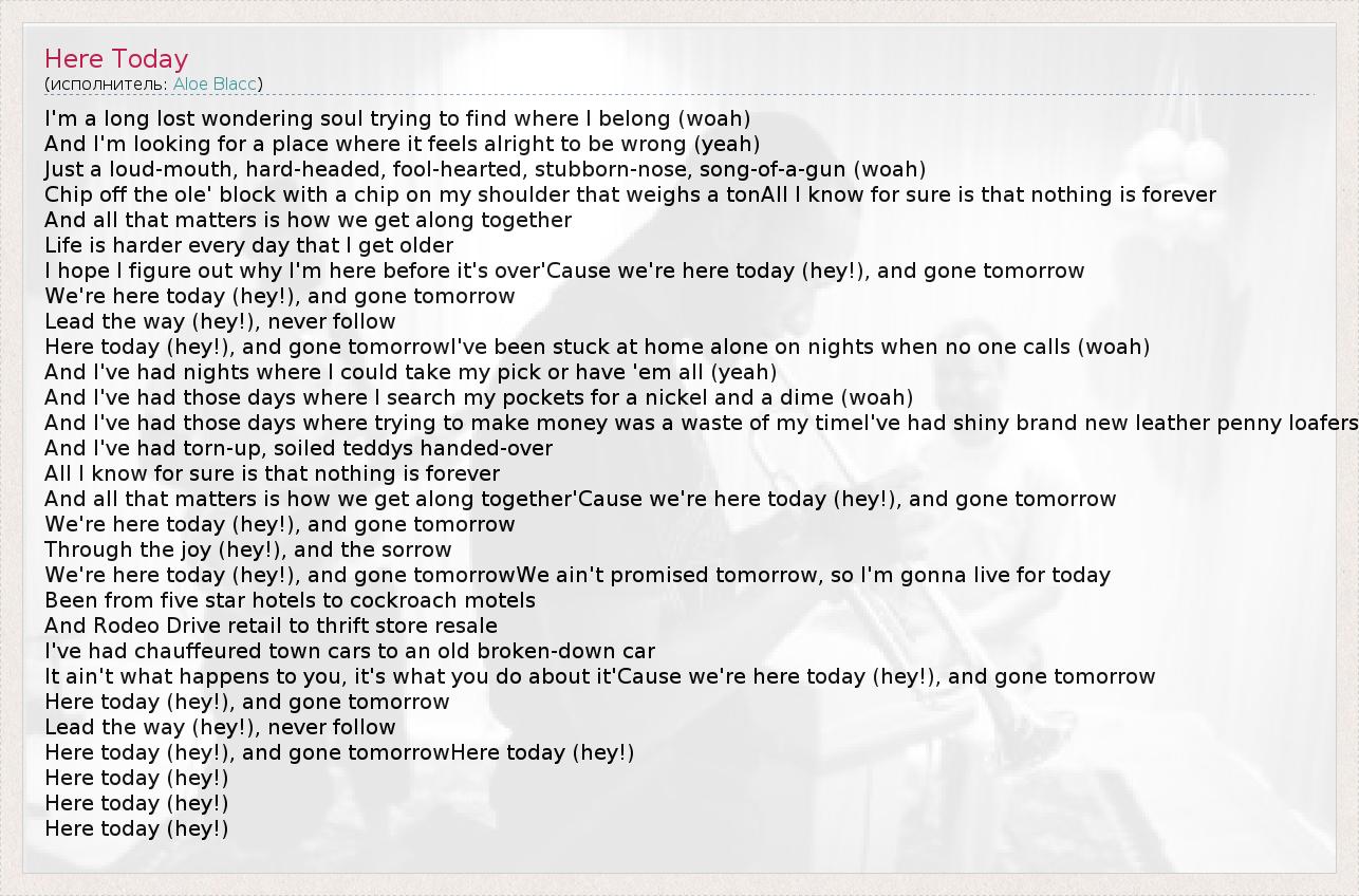 А как ты думаешь, о чем песня "Here Today" ?