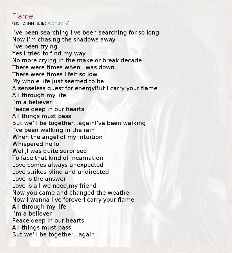 А как ты думаешь, о чем песня "Flame" ?