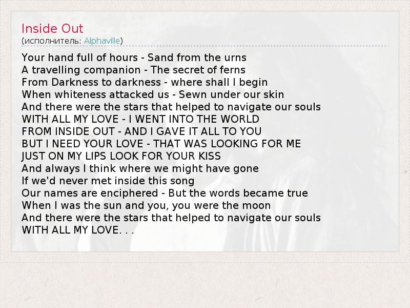 FROM INSIDE OUT - AND I GAVE IT ALL TO YOU