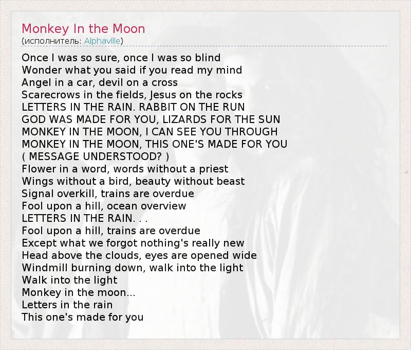 А как ты думаешь, о чем песня "Monkey In the Moon" ?