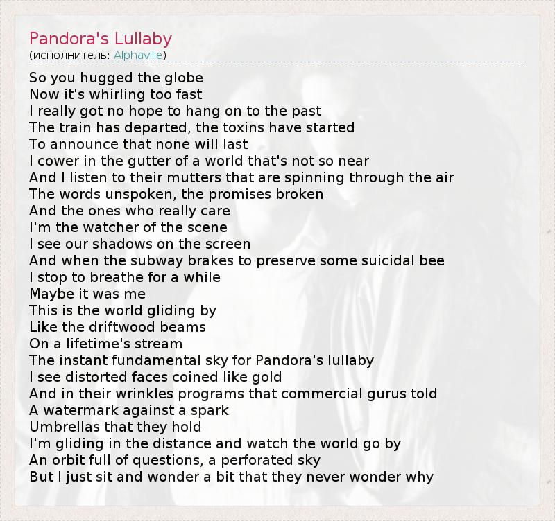 А как ты думаешь, о чем песня "Pandora's Lullaby" ?