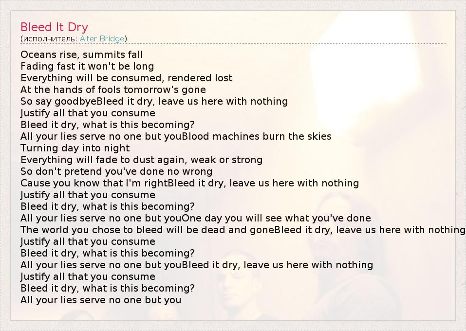 А как ты думаешь, о чем песня "Bleed It Dry" ?