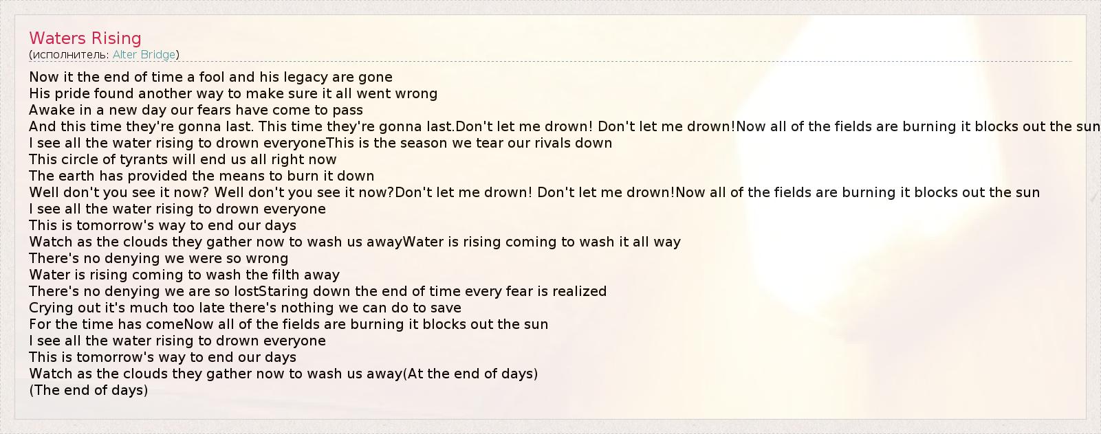 А как ты думаешь, о чем песня "Waters Rising" ?