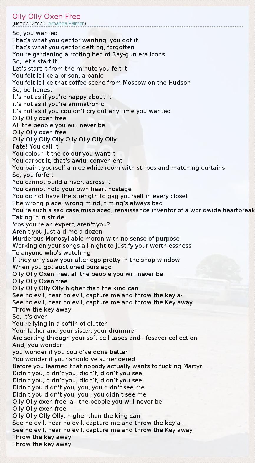 А как ты думаешь, о чем песня "Olly Olly Oxen Free" ?