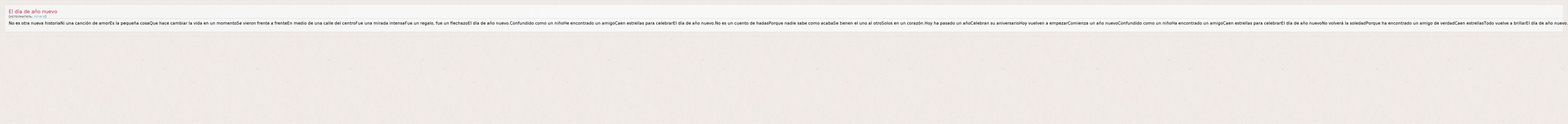 No es otra nueva historiaNi una canción de amorEs la pequeña cosaQue hace cambiar la vida en un momentoSe vieron frente a frenteEn medio de una calle del centroFue una mirada intensaFue un regalo, fue un flechazoEl día de año nuevo.Confundido como un niñoHe encontrado un amigoCaen estrellas para celebrarEl día de año nuevo.No es un cuento de hadasPorque nadie sabe como acabaSe tienen el uno al otroSolos en un corazón.Hoy ha pasado un añoCelebran su aniversarioHoy vuelven a empezarComienza un año nuevoConfundido como un niñoHa encontrado un amigoCaen estrellas para celebrarEl día de año nuevoNo volverá la soledadPorque ha encontrado un amigo de verdadCaen estrellasTodo vuelve a brillarEl día de año nuevo.