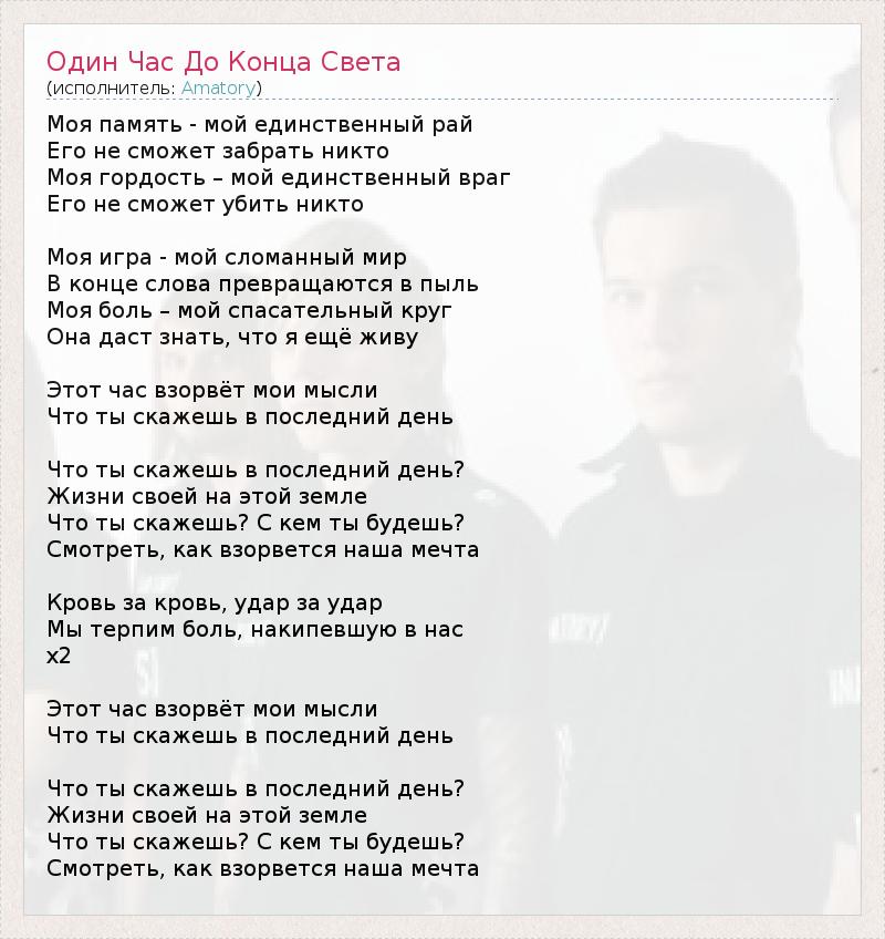 ГлавнаяИсполнителиAmatoryОдин Час До Конца Света
