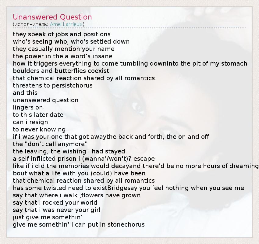 А как ты думаешь, о чем песня "Unanswered Question" ?